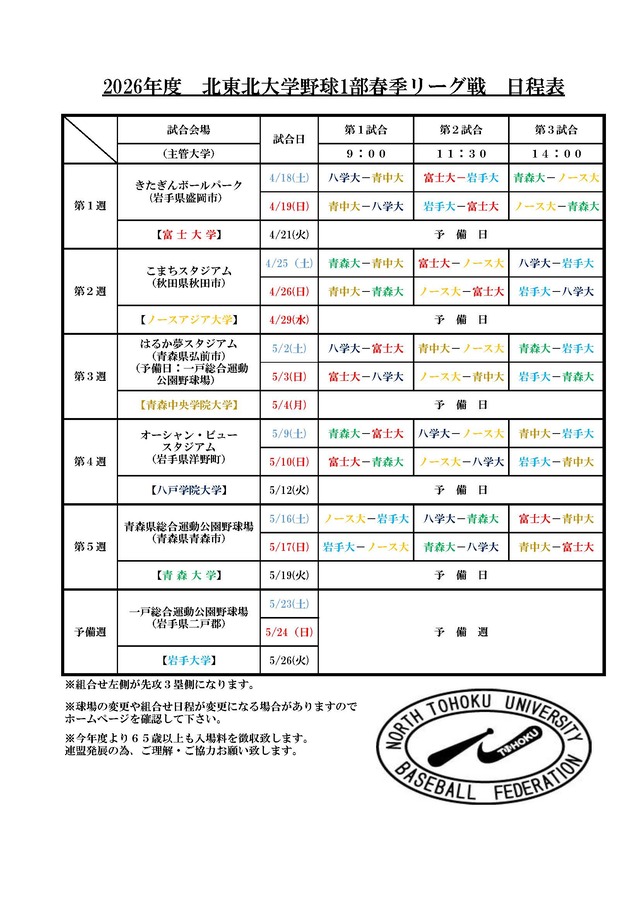 北東北大学野球連盟 NORTH TOHOKU UNIVERSITY BASEBALL FEDERATION