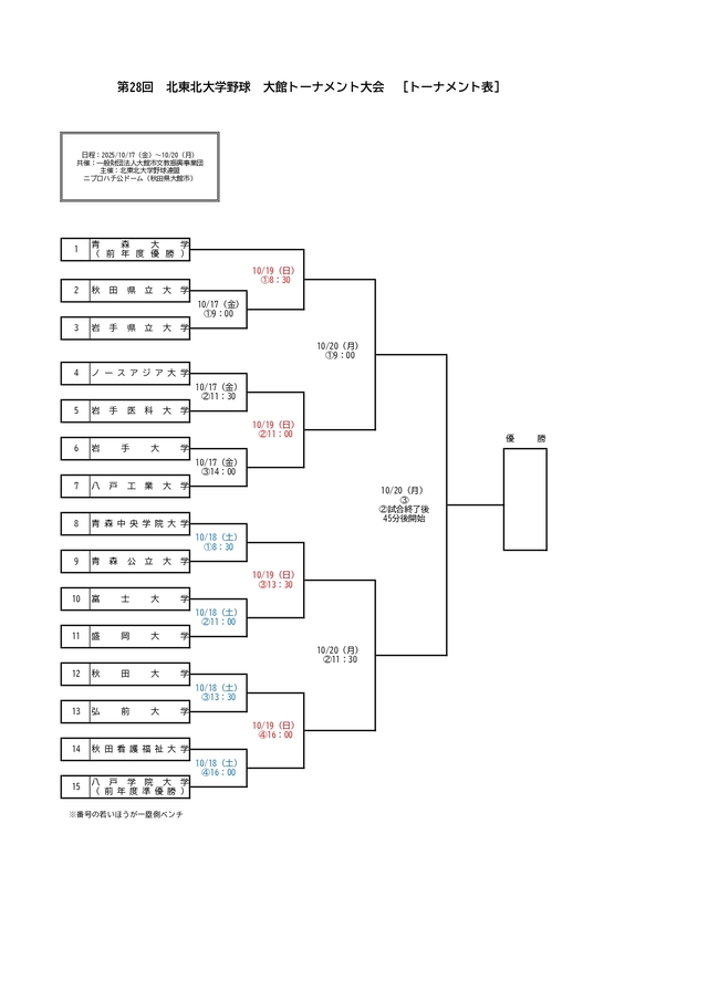 先攻:三塁側 秋田県立大学(三部1位) 後攻:一塁側 岩手県立大学(二部6位)