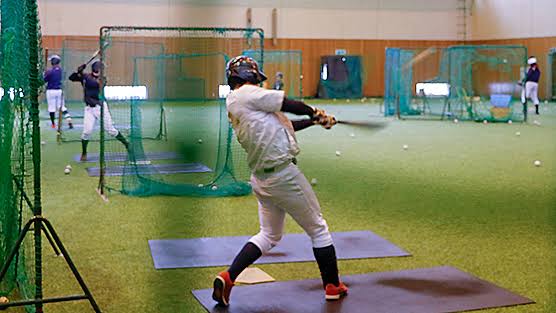 内野がそのまま収まる広さを持った人工芝フロアのほか、トレーニングルームを備えています。さらに、二階にはブルペンが二箇所備えてあり、天候に左右されず充実した練習を行うことができます。